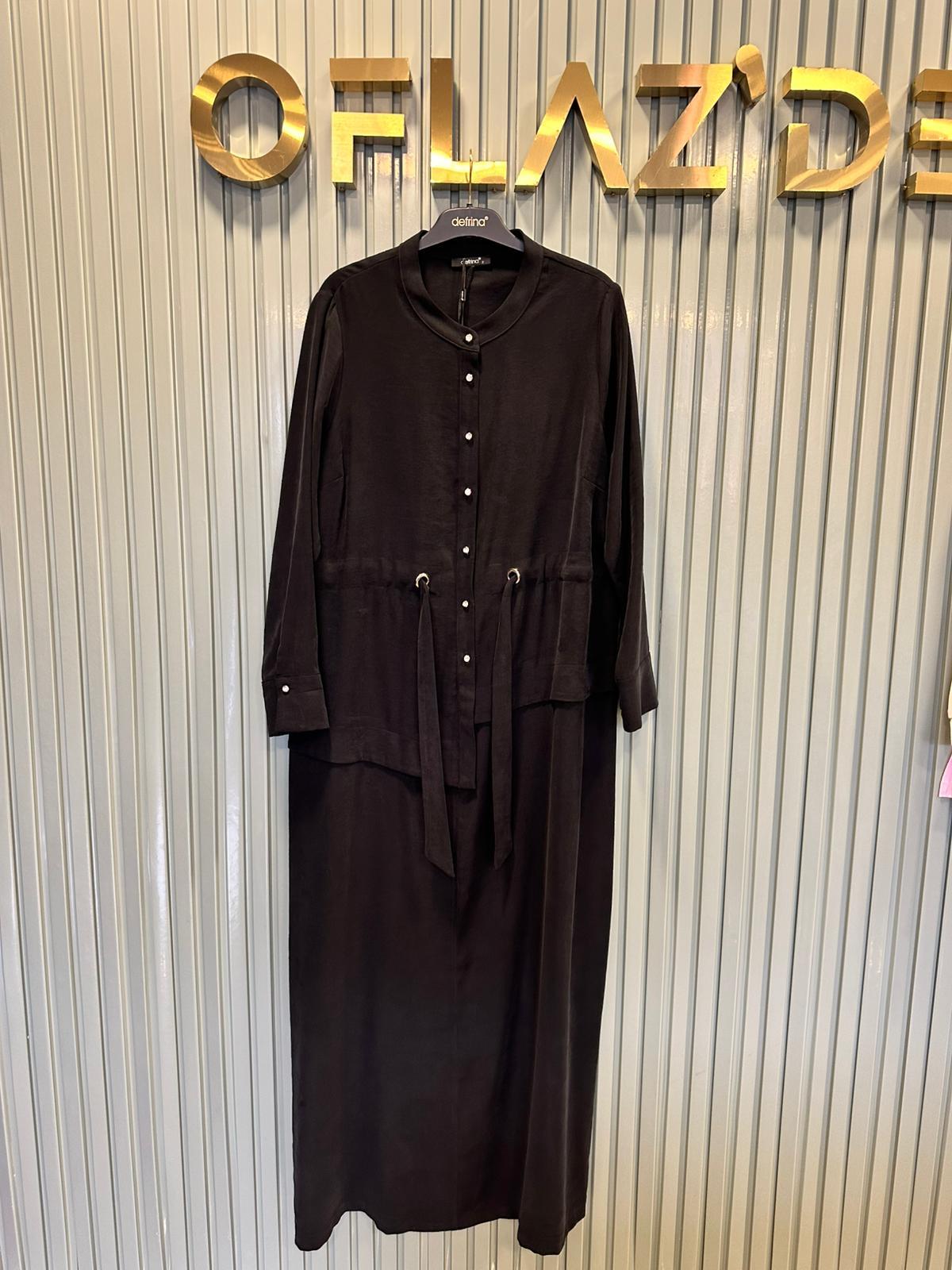 Defrina Taşlı Düğmeli Tensel Elbise Kahverengi 41075