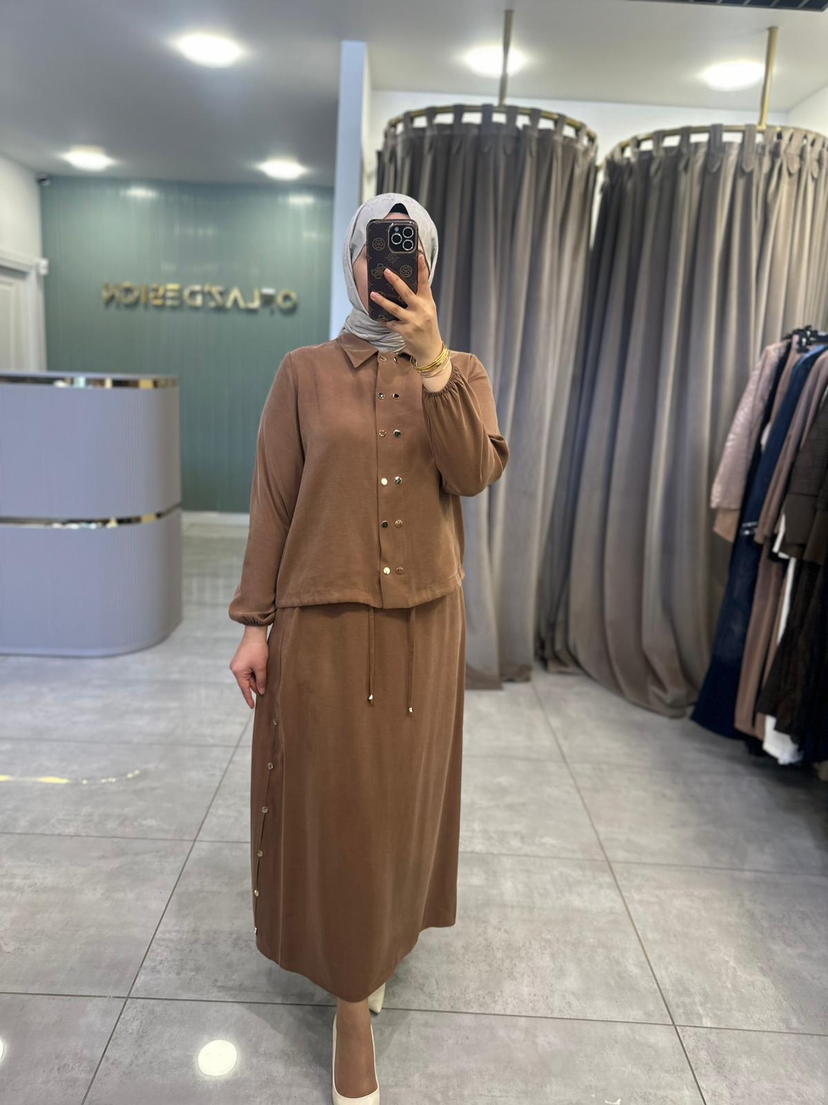Defrina Çıt Çıt Detaylı Qupra Etekli Takım Taba 61123