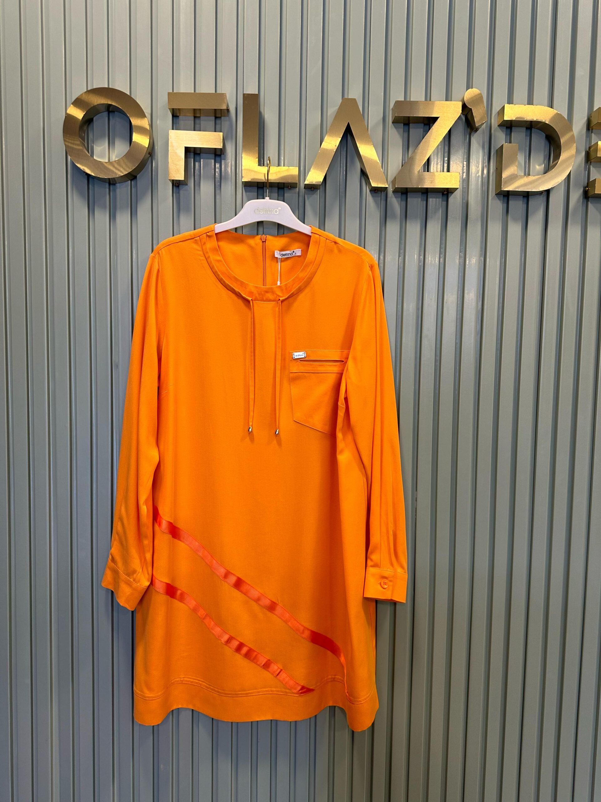 Defrina Defrina Grogen Detaylı Bağcıklı Tunik Turuncu 31245