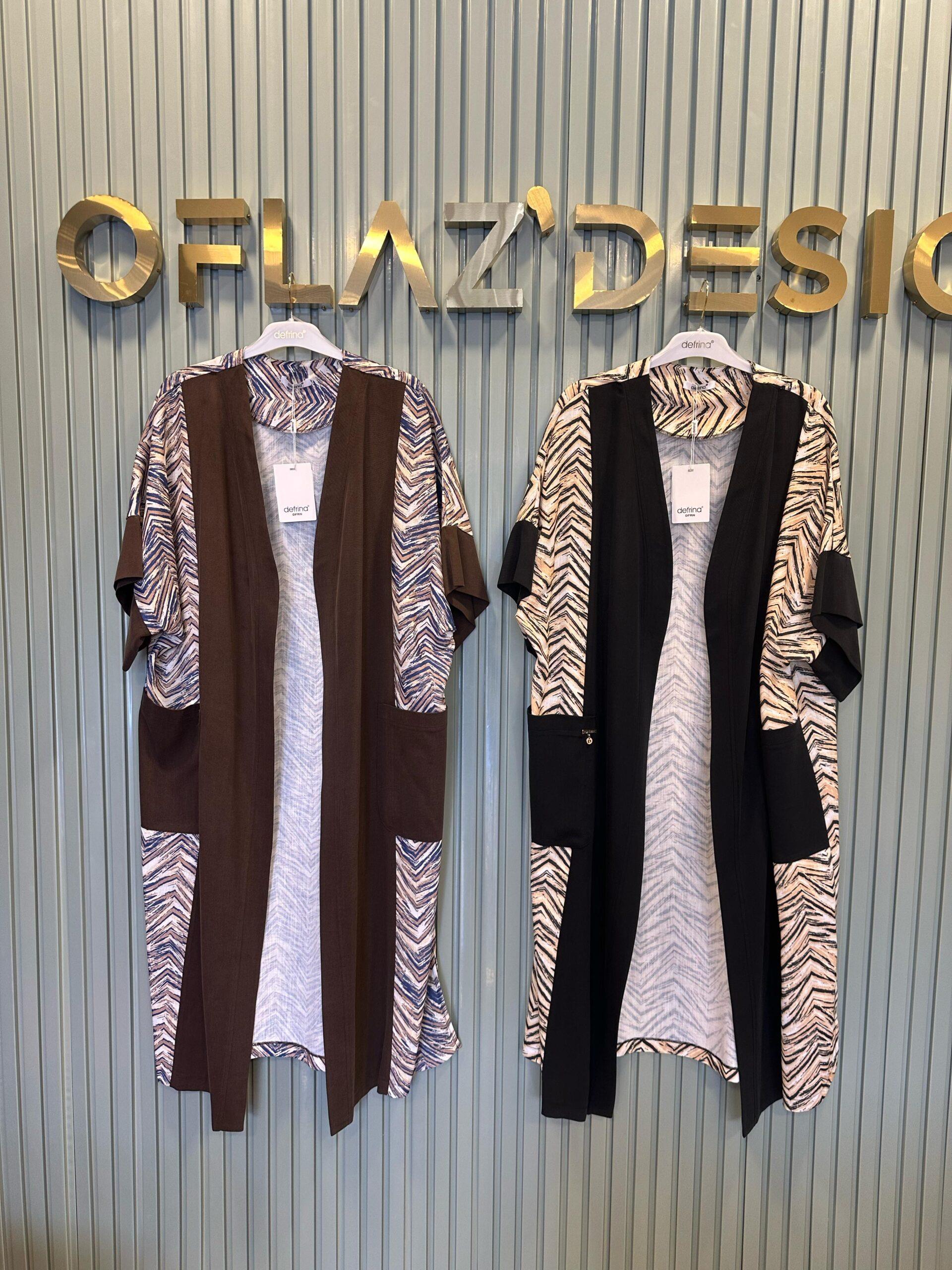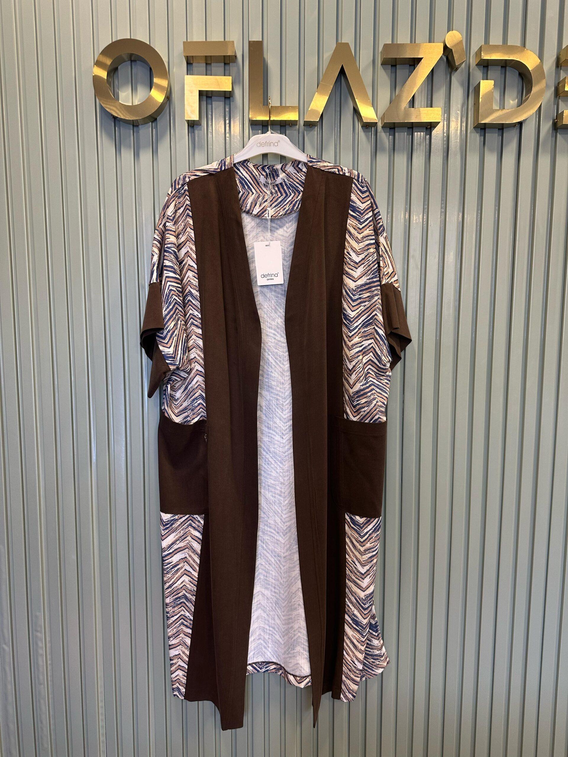 Defrina Desen Detaylı Cepli Yarım Kol Ceket Kahverengi 81131