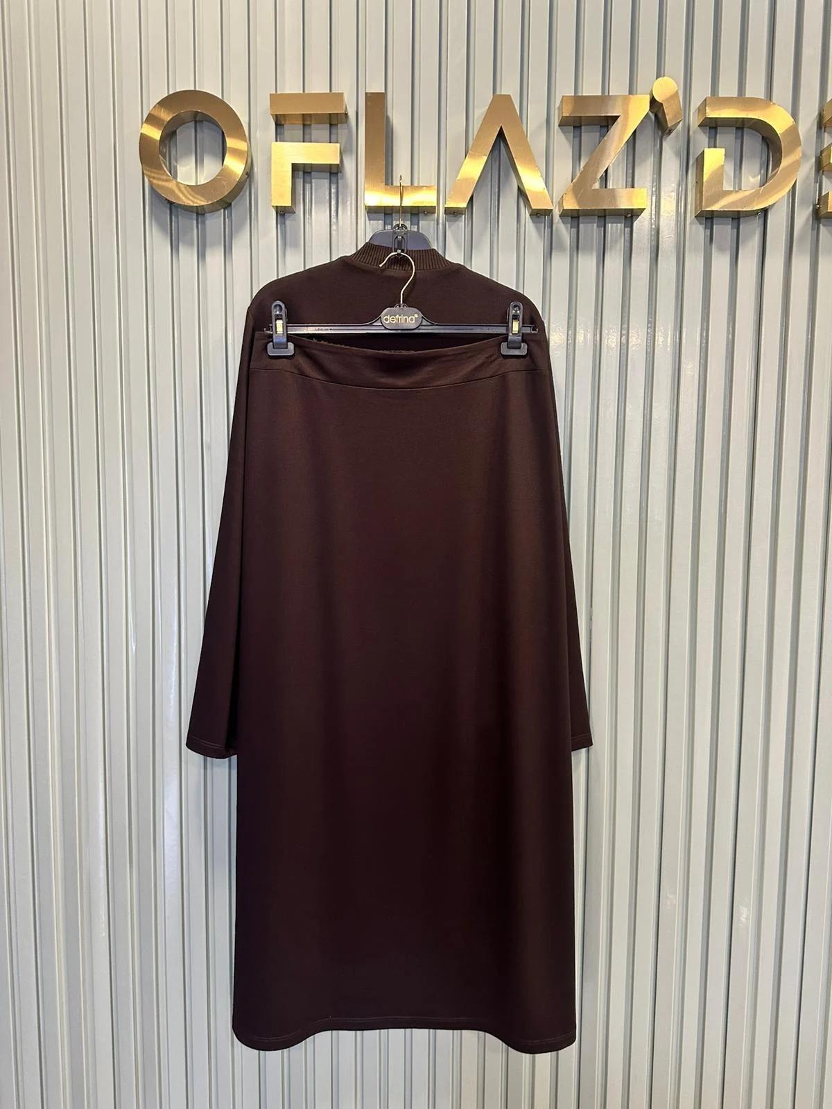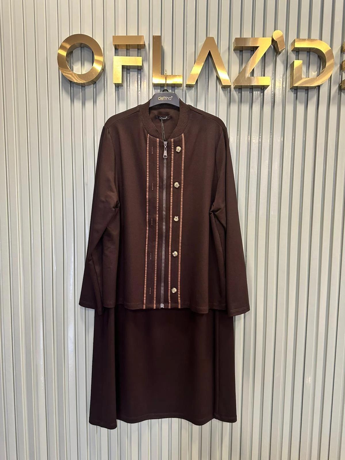 Defrina Düğme Dty. Biyeli Etekli Takım Kahverengi 61130