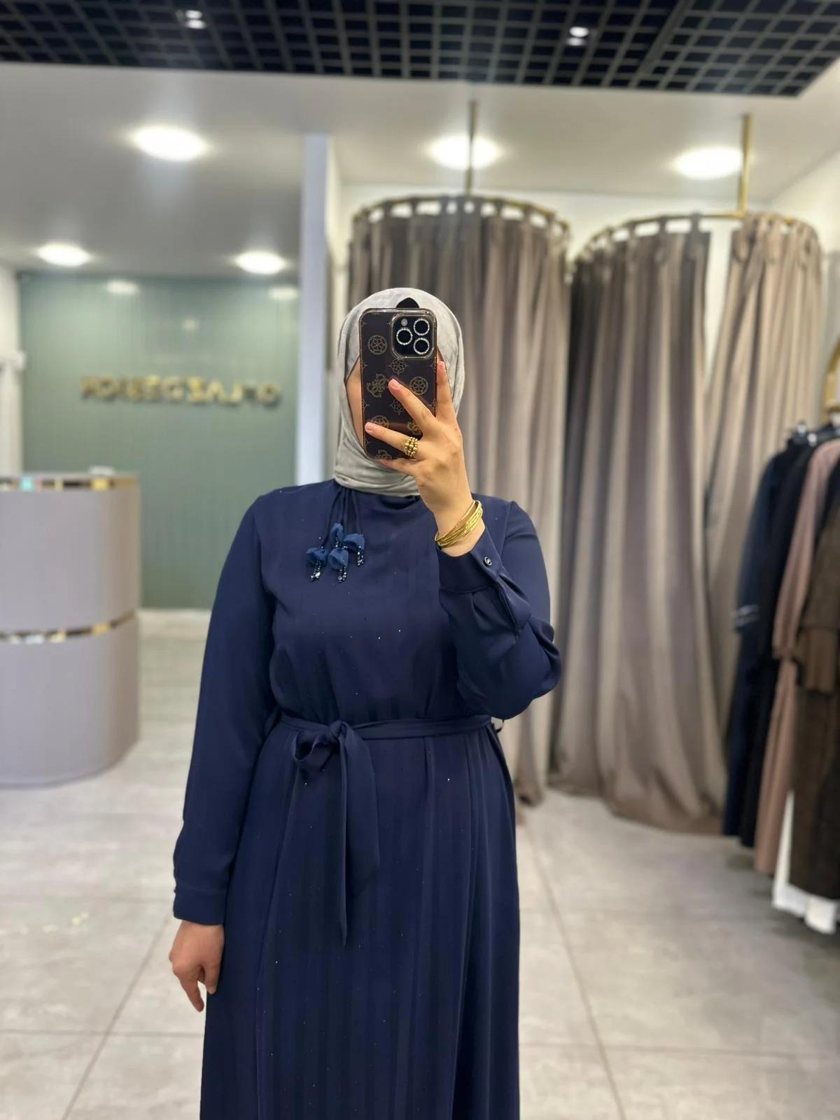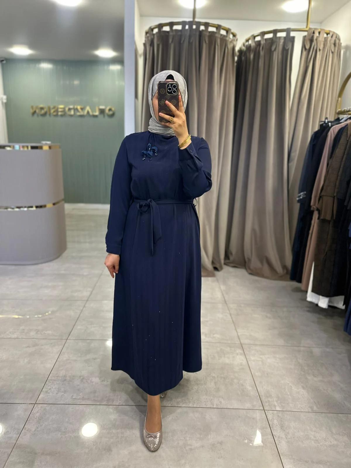 Fuat Gürşen Büyük B. Ön Şerit Detay Elbise Lacivert 4101