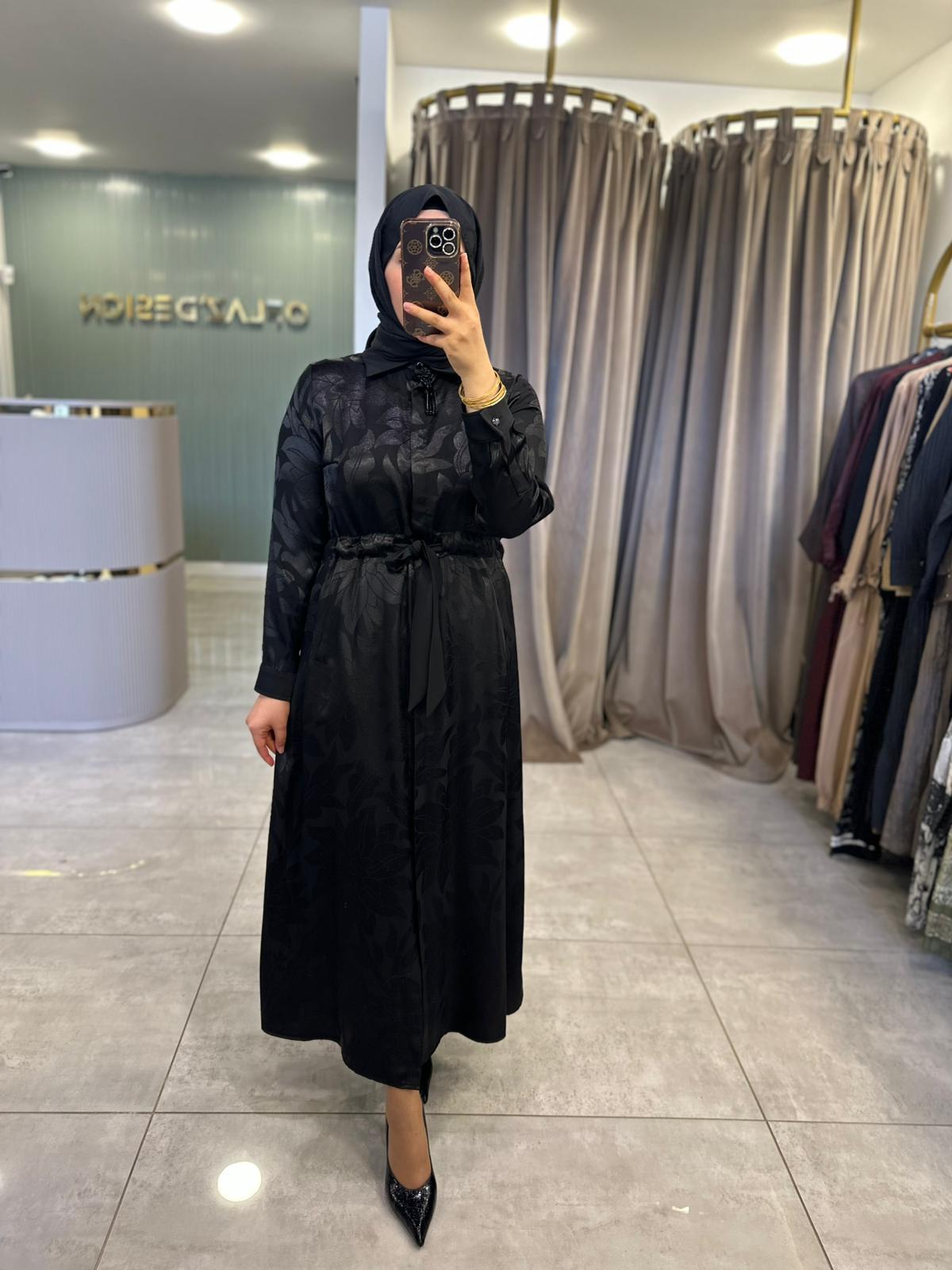 Fuat Gürşen Büyük B.Geniş Çiçek Baskılı Elbise Siyah 4104