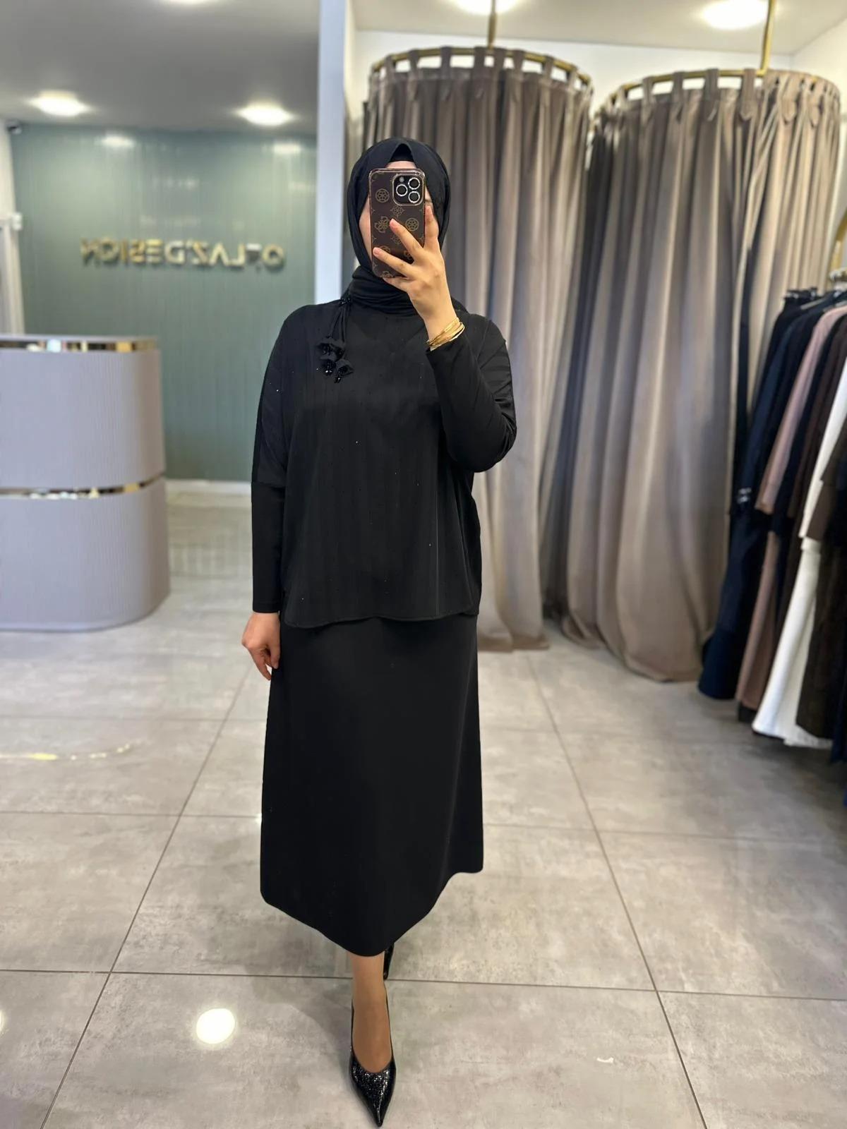 Fuat Gürşen Ön Şerit Detay Etekli Takım Siyah 4309