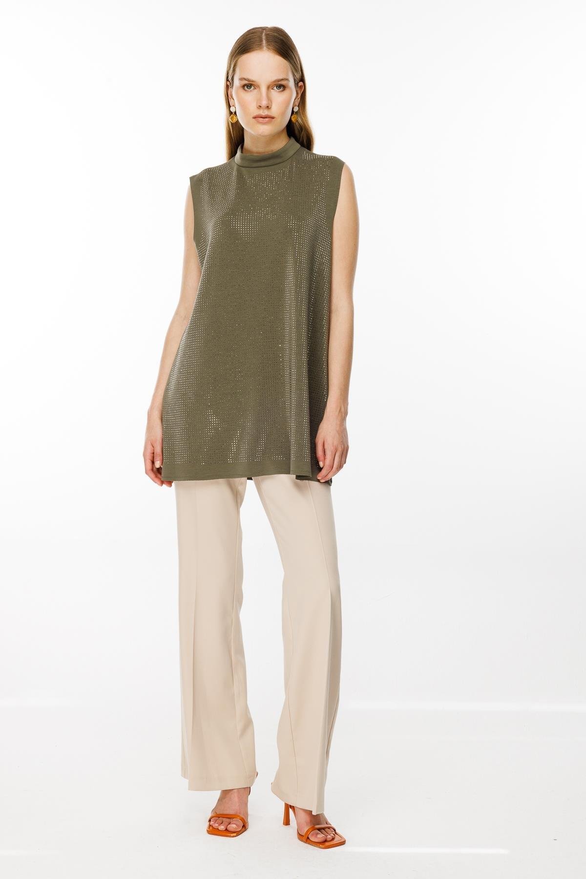 Ghisa Taş Detaylı Kolsuz Tunik Haki Gs Basic 1858