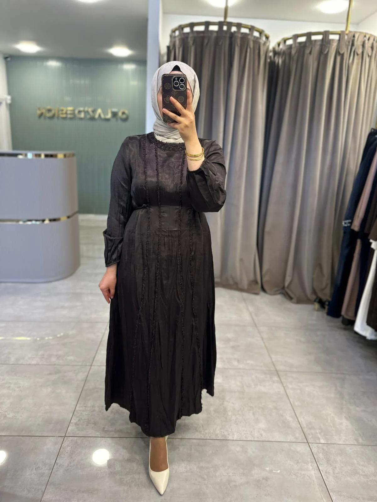 LissMore Yelek Detaylı Parlak Elbise Siyah 5988