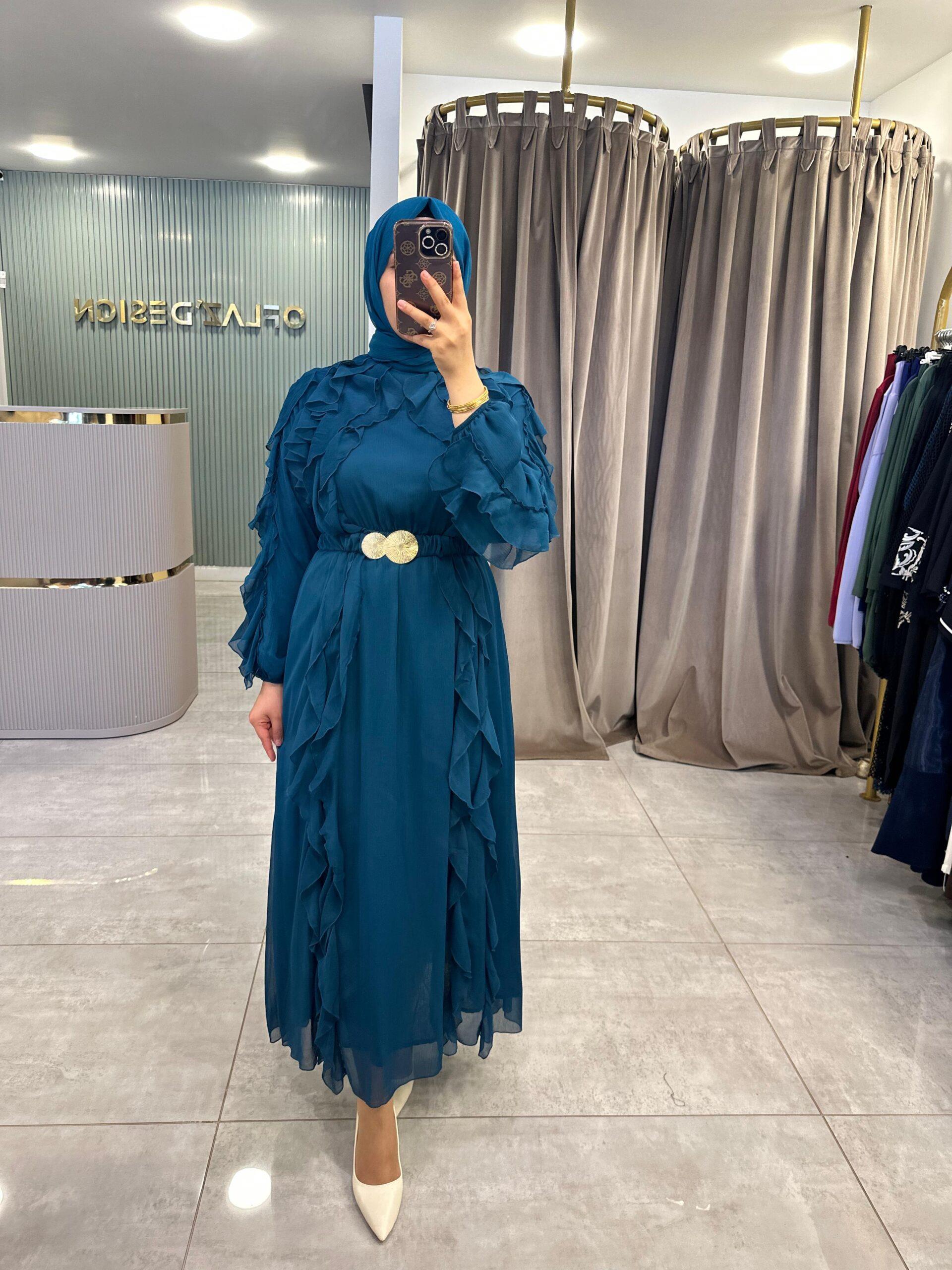Missemramiss Special Ruffle Elbise Petrol Yeşil 4807