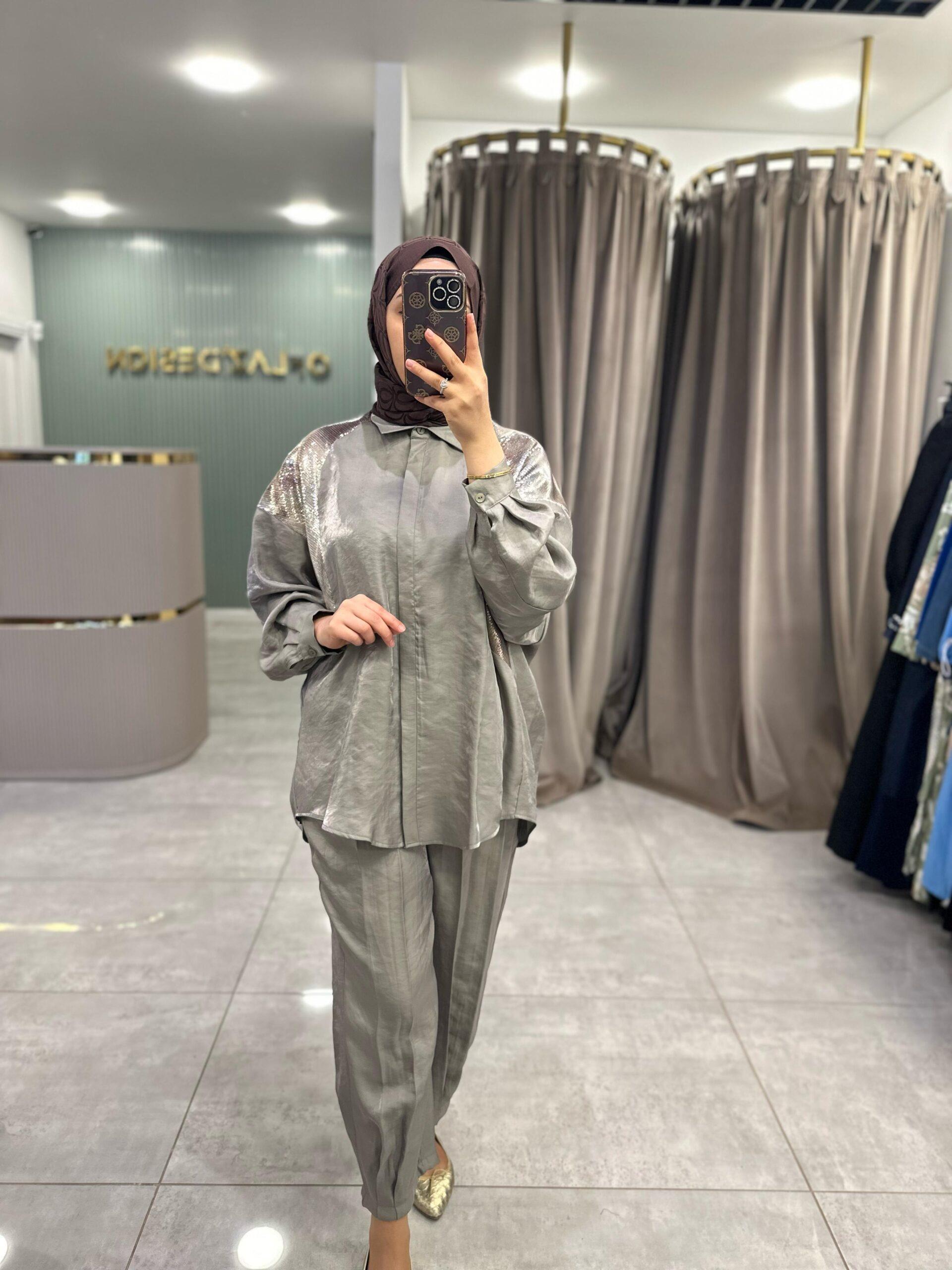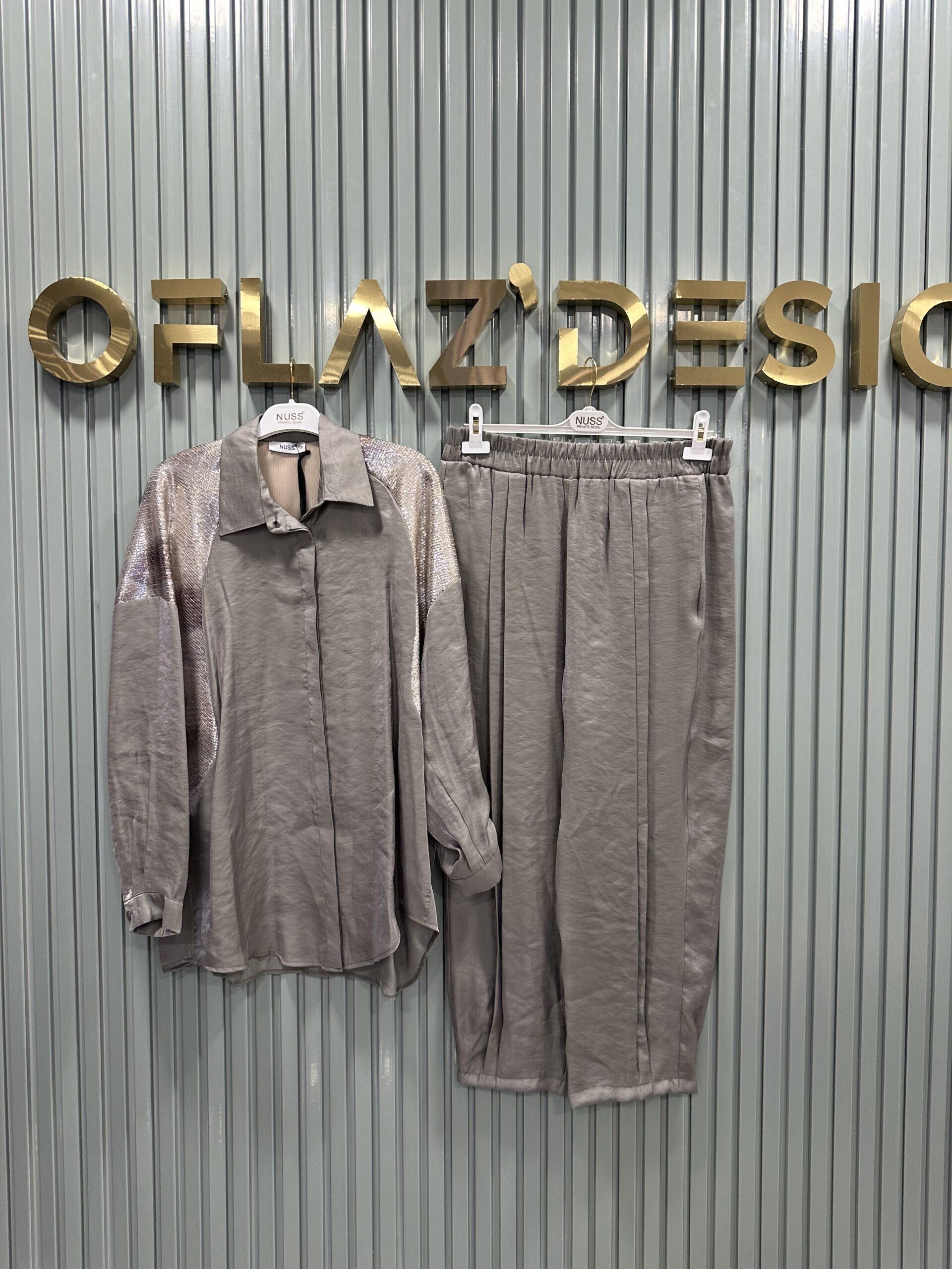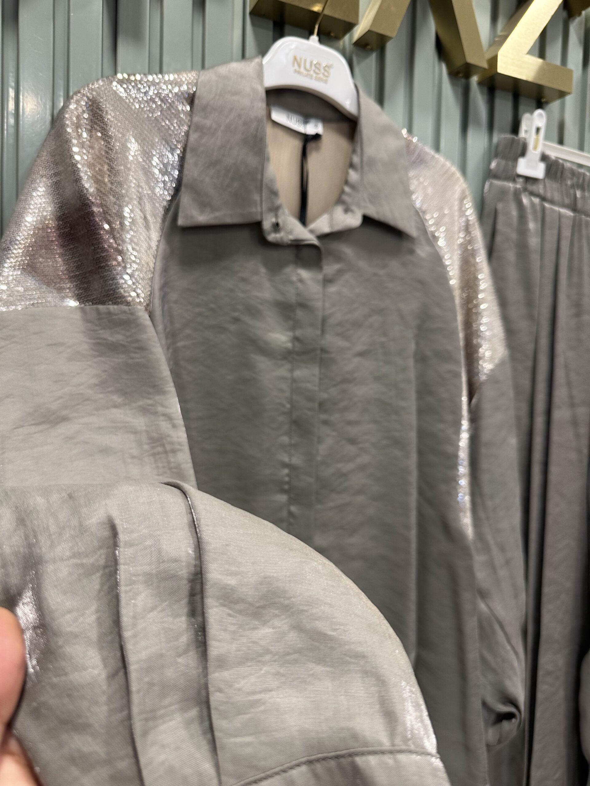 Nuss Bomber Payetli Pantolonlu Takım Gri 25Y 1032