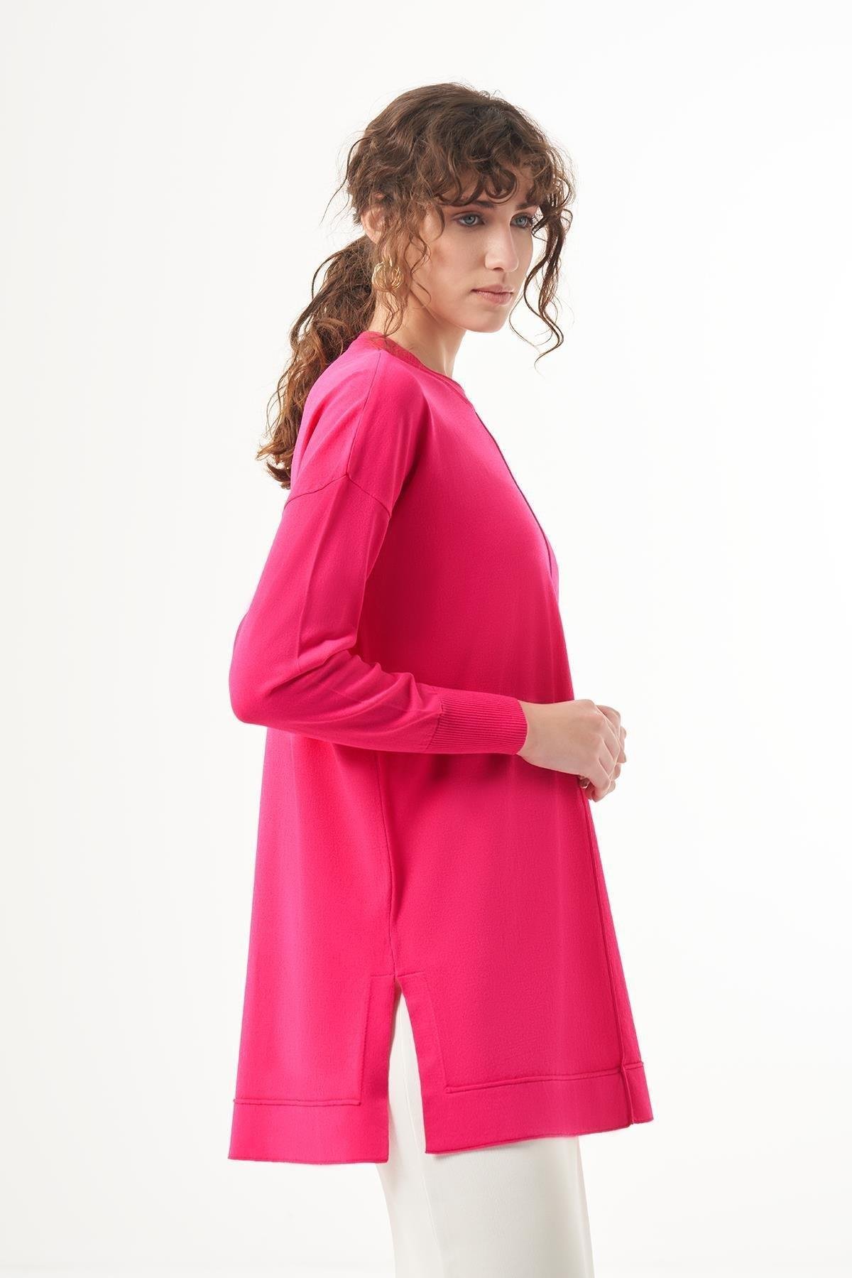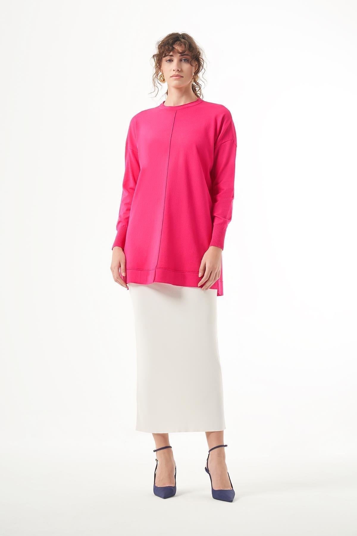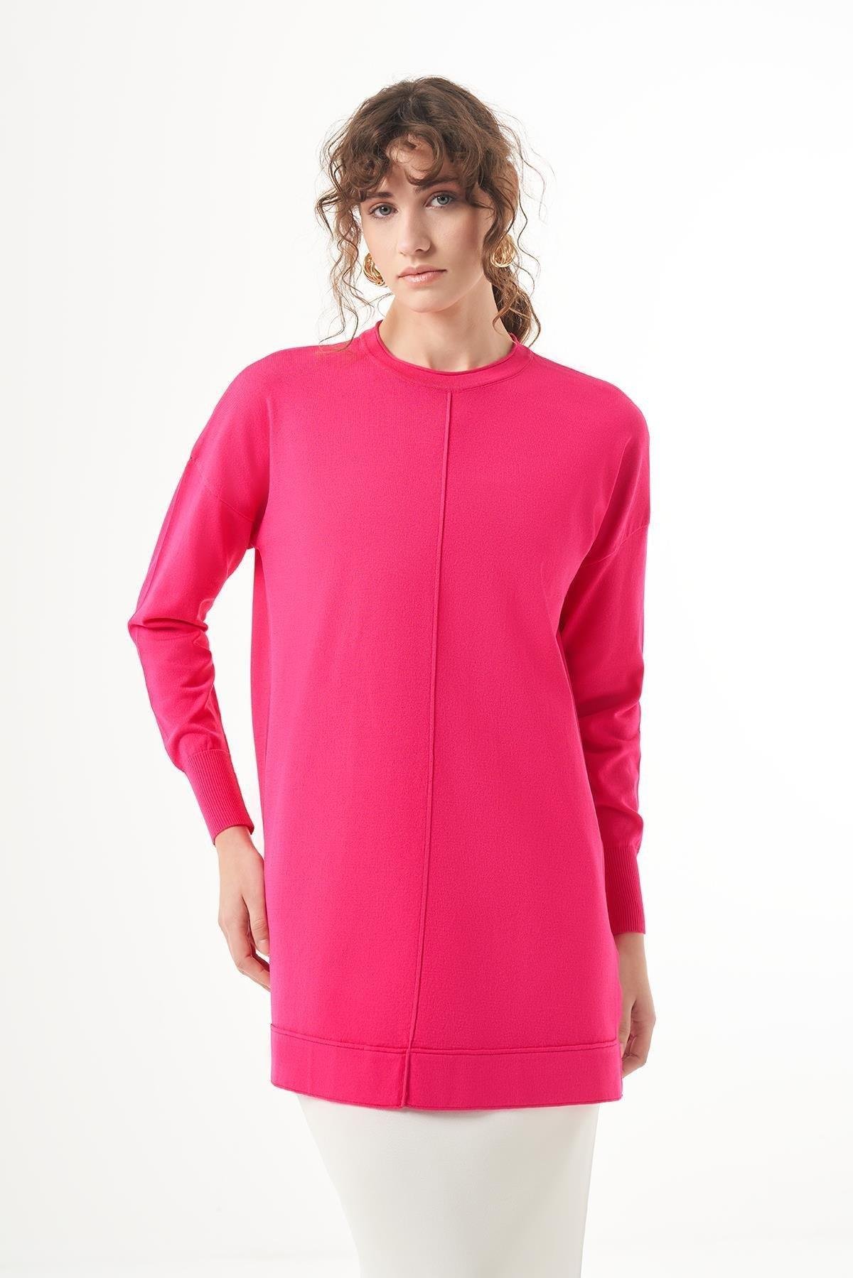 Nuss Önü Nervür Detaylı Merserize Tunik Fuşya 1201