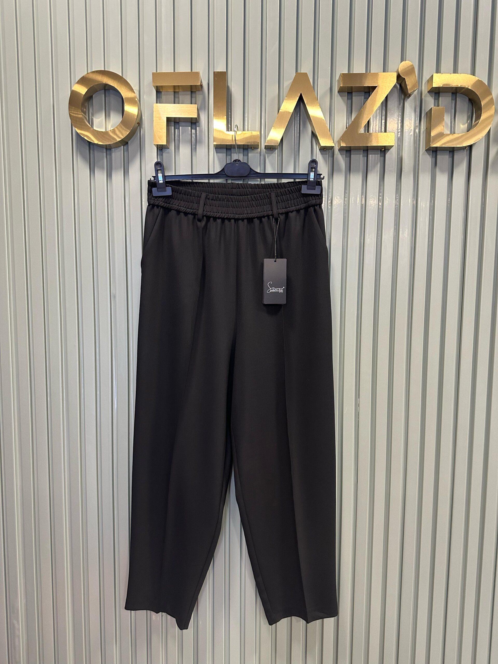 Sentez Angel Beli Lastikli Köprülü Havuç Pantolon Siyah 5583