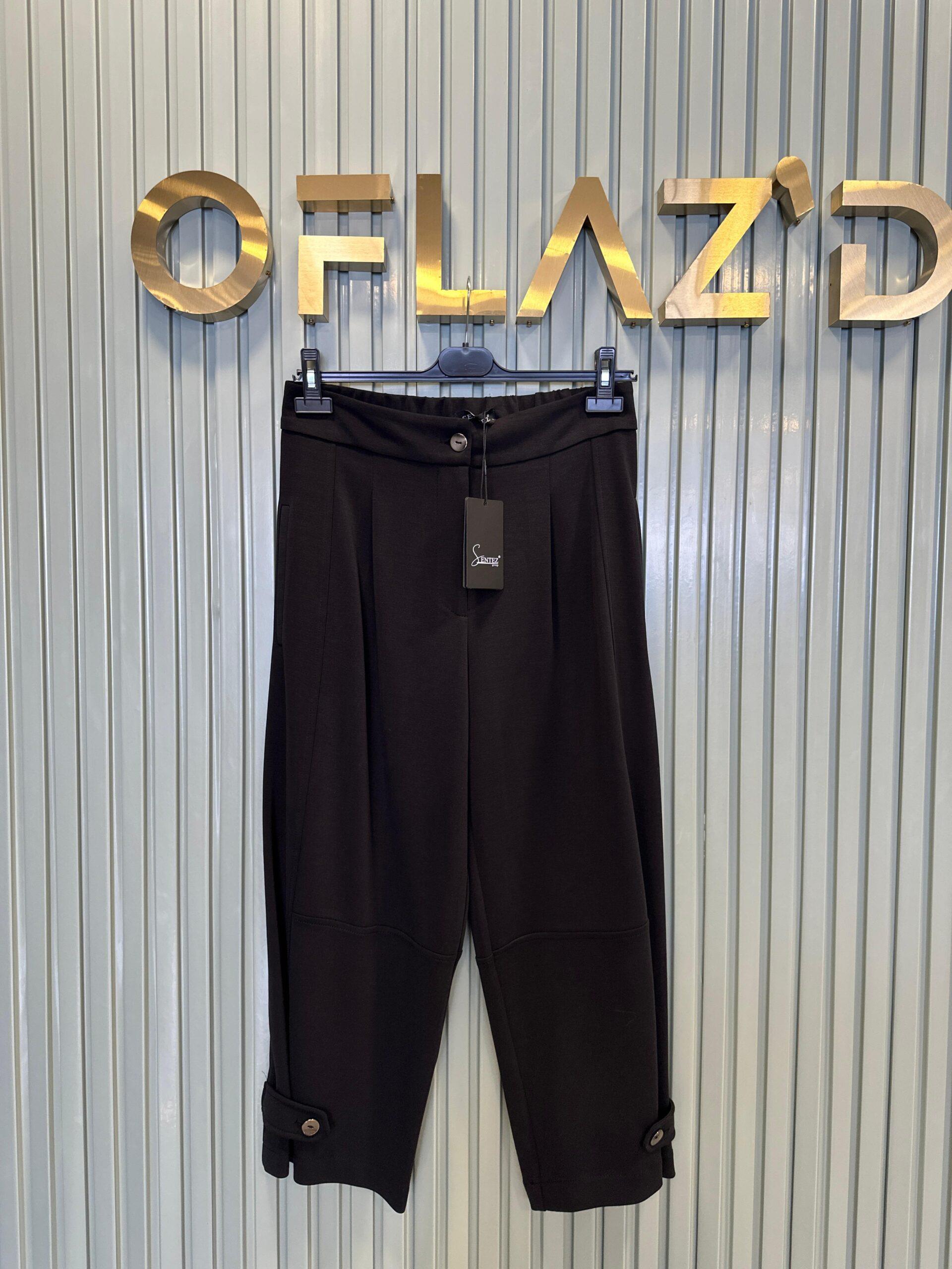 Sentez Atlas Paçası Apoletli Bambu Pantolon Siyah 5570