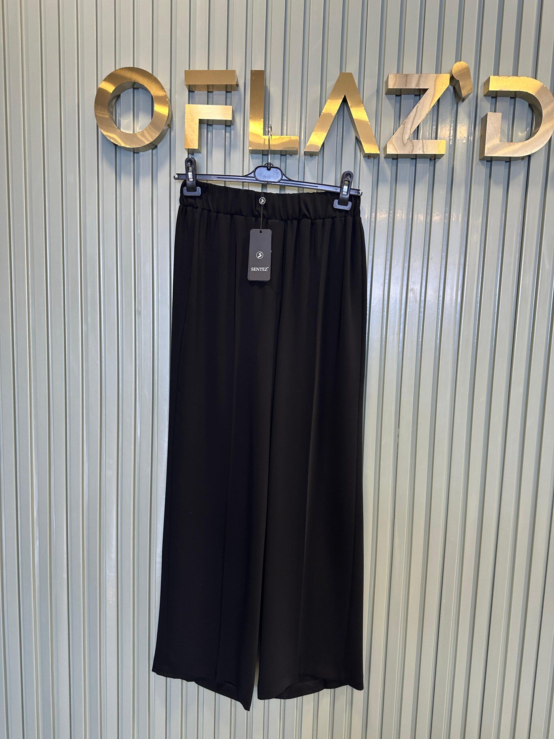 Sentez Dıştan Kemerli Geniş Paça Pantolon Siyah 5381