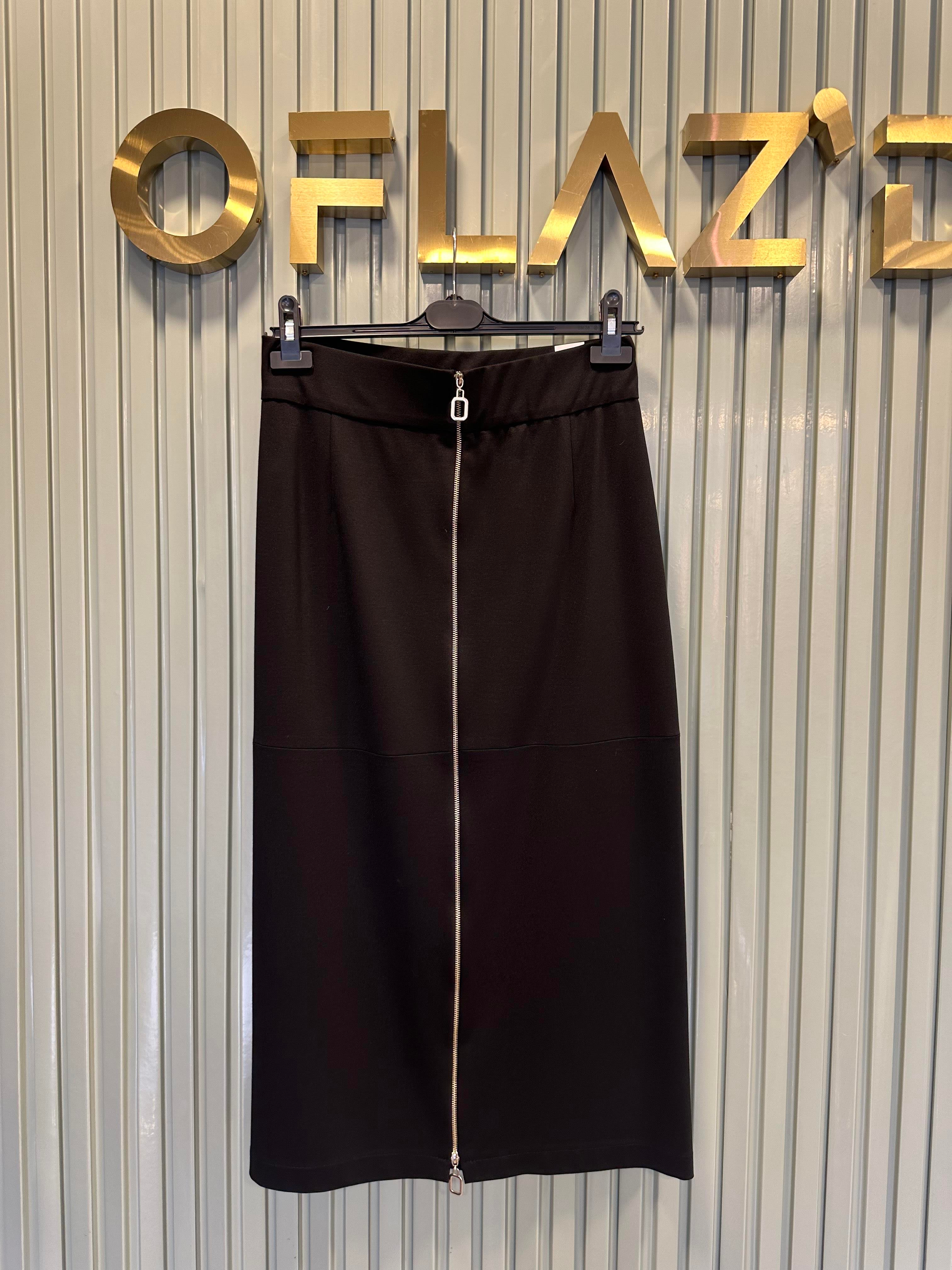 Sentez Önü Fermuarlı Spor Etek Siyah 5440