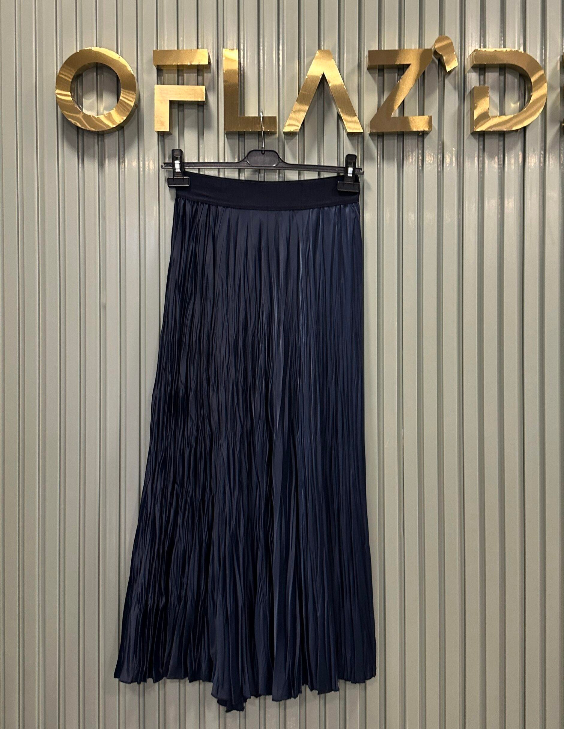 Sentez Saten Kırıştırma Etek Lacivert Sz 5443