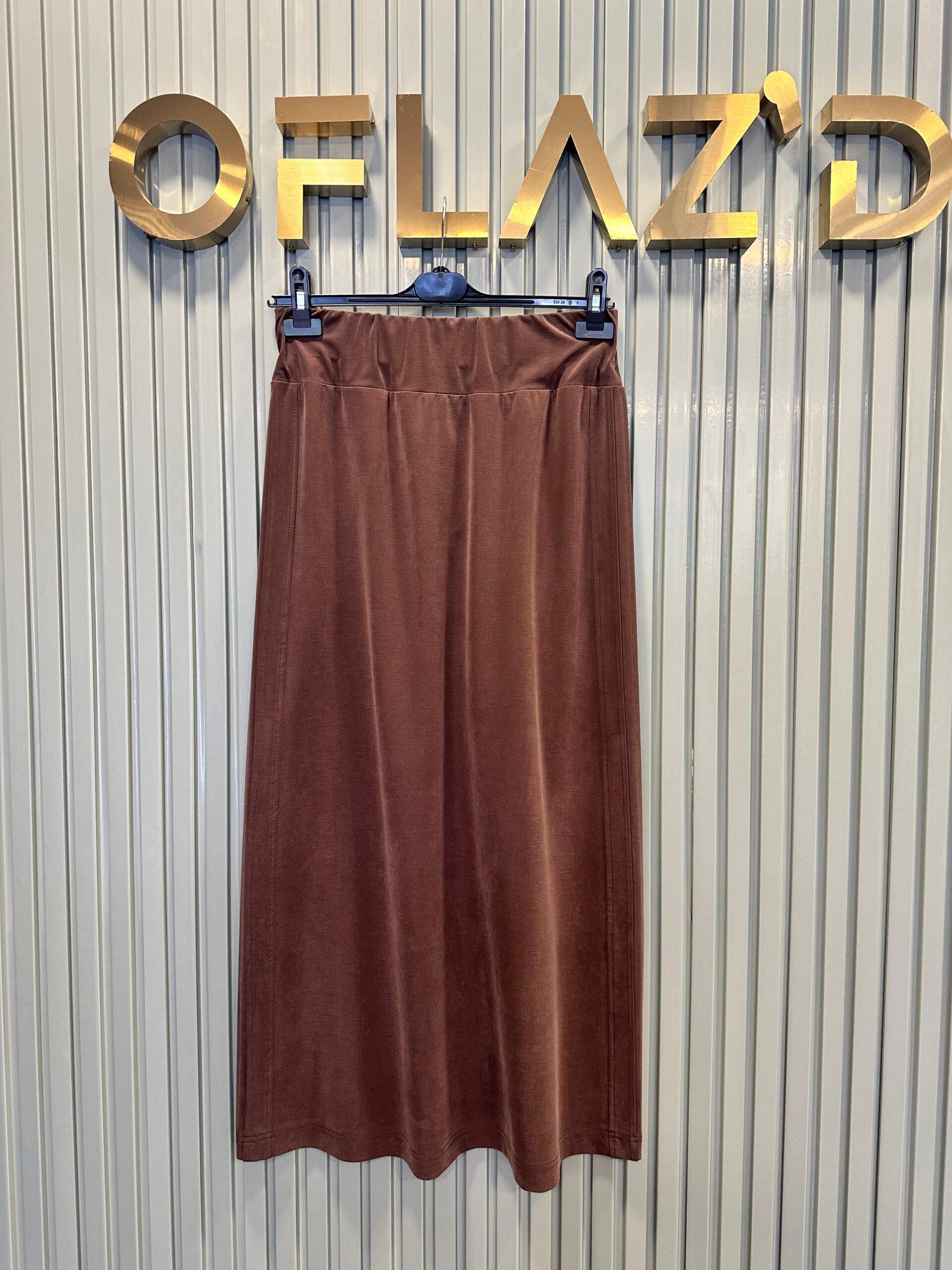 Sentez Yanı Nervürlü Etek Kahverengi 5461